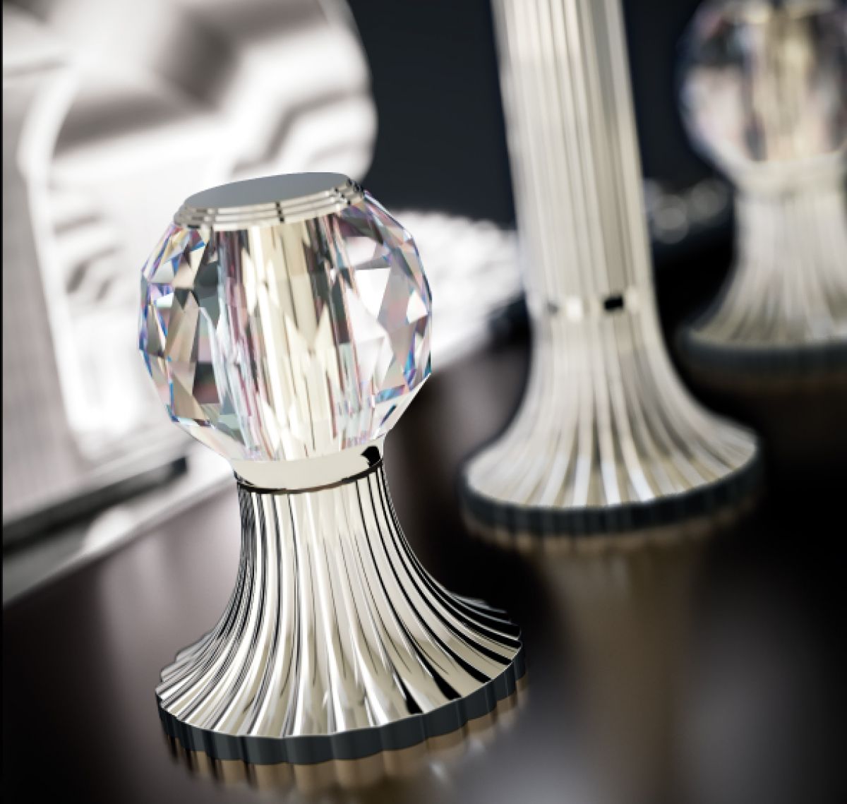 Das Zusammenspiel von Kristall und Metall schafft eine Balance aus Klarheit und Ausdruck. Metall gibt Struktur und Präzision, Kristall moduliert das Licht. So entstehen weichere Reflexionen und mehr räumliche Tiefe – als dezente Veredelung mit atmosphärischer Wirkung.